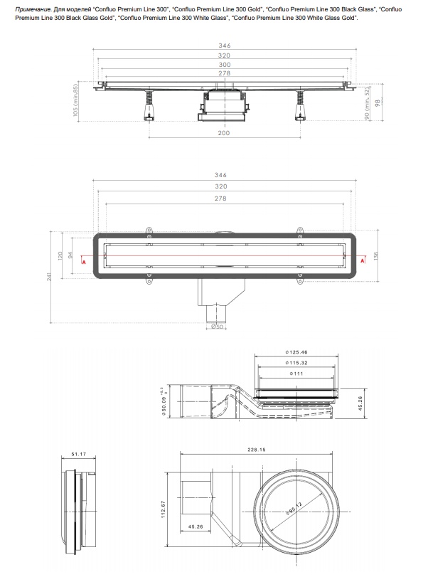 Душевой трап Pestan Confluo Premium Black Glass Line GOLD 300