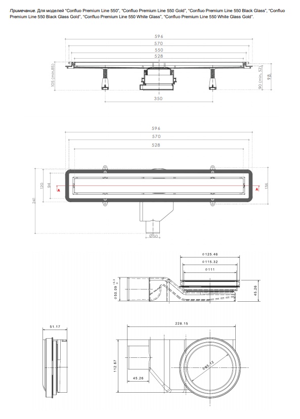 Душевой трап Pestan Confluo Premium White Glass Line GOLD 550