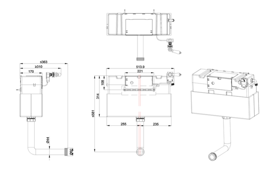 Бачок Burlington с двойным смывом подходит для унитазов, расположенных вплотную к стене, где бачок должен быть скрыт.