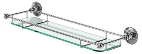 Полку с перилами [A18 CHR]. Установив ее в помещении гигиены, вы сможете спокойно наслаждаться теплой водой пенной ванны. Устройство не ржавеет от повышенной влажности комнаты, так как выполнено из латуни и покрыто хромом.