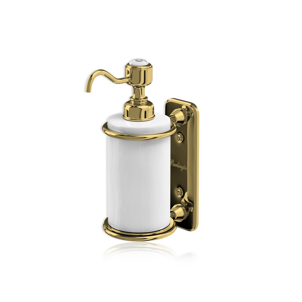 Одинарный дозатор мыла от фирмы Burlington имеет солидное оформление и органично вписывается в интерьер ванной комнаты.