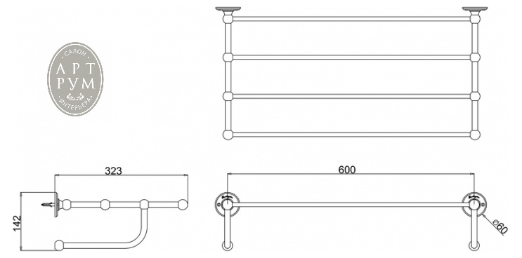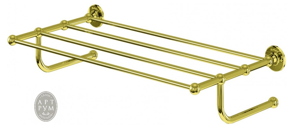 Полка для полотенец имеет вид решетки, выполненной в золотистой окраске. Благодаря этому она органично впишется в любой стиль оформления.