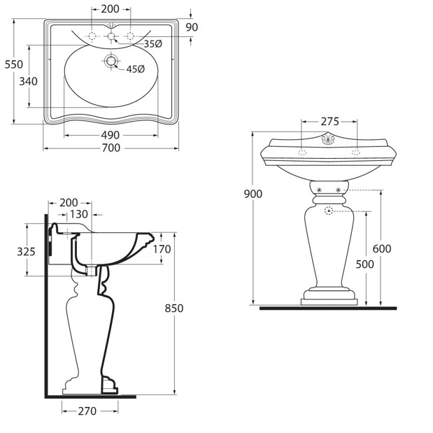 Azzurra Jubilaeum JUB 200/T Раковина подвесная на колонне