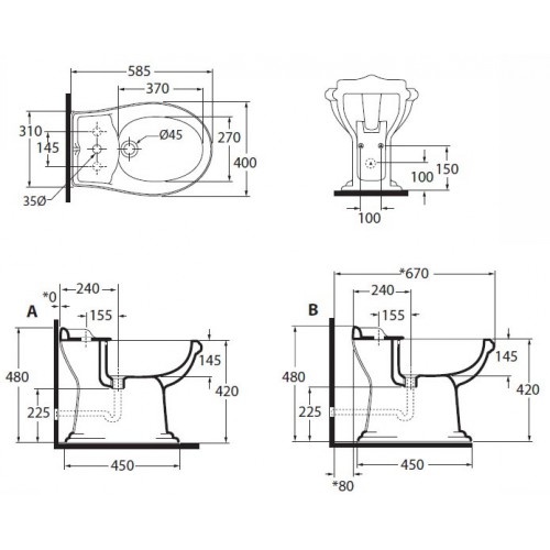 AZZURRA JUBILAEUM биде напольное с 3 отв под смеситель, цвет белый с креплением к полу