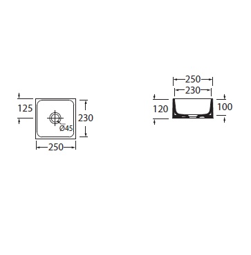Azzurra Раковина чаша Geometric квадратная ,без перелива, без отв. под смеситель