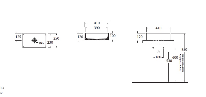 Azzurra Раковина чаша Geometric ,без перелива, без отв. под смеситель