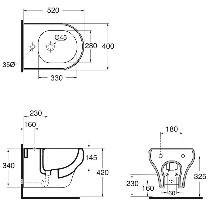 AZZURRA CHARME биде подвесное , c креплением KIT 2000 CF,