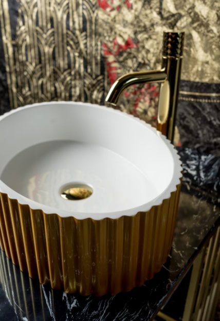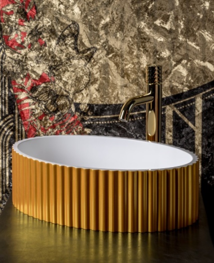 Раковина Boheme Canale рифленная глянец золото