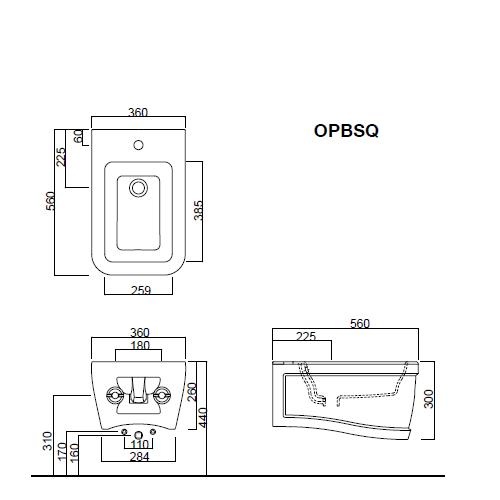 Биде подвесное Cielo Opera Quadro OPBSQ