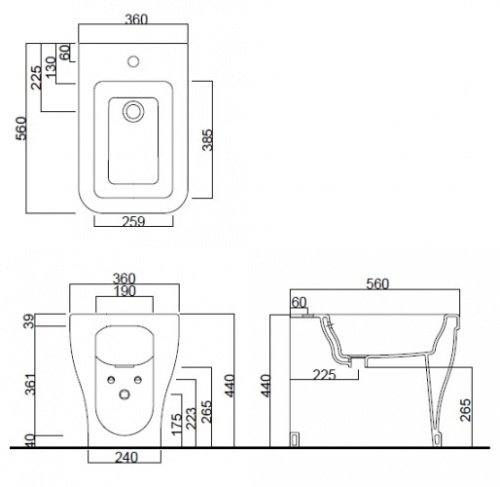 Биде приставное Cielo Opera Quadro OPBIQ