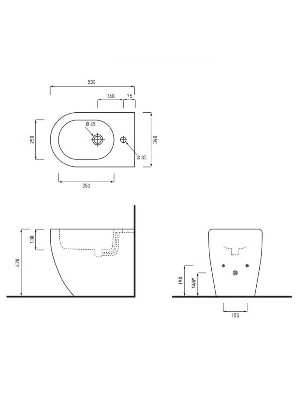 Биде напольное пристенное Cielo Smile SMBID