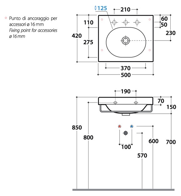 | Наименование: | Раковина подвесная/встраиваемая 50x42 Globo Classic SCL51.BI |