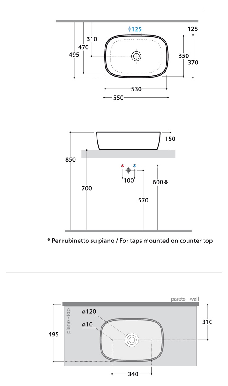 | Наименование: | Раковина накладная 55x37 Globo Genesis GE044.BI |