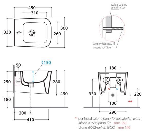 | Наименование: | Биде подвесное 45x36 Globo Stone SSS11.BI |