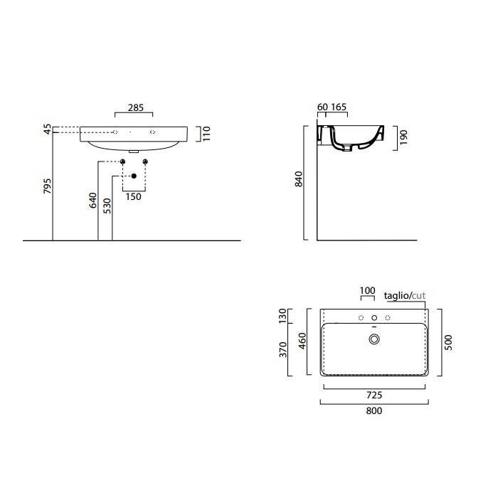 GSI Sand Раковина подвесная с переливом. с 1 отв под смеситель