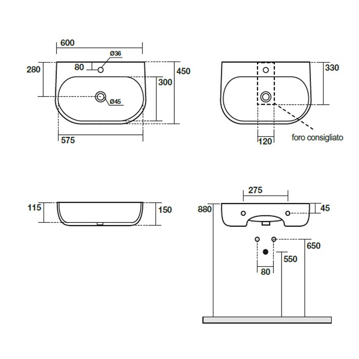 Kerasan Nolita Раковина подвесная/накладная, с 1 отв под смеситель