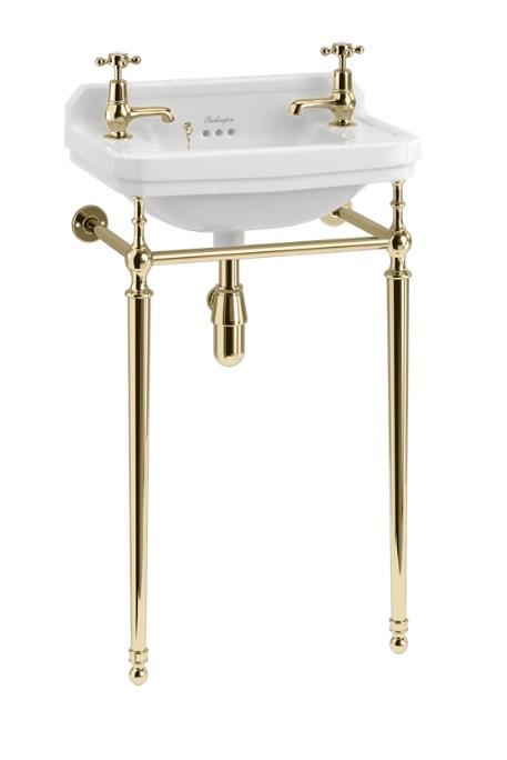 Гардеробная раковина Burlington Edwardian B8R/B8L+T21A GOLD на 1 отверстие справа или слева с подстольем Burlington, золото