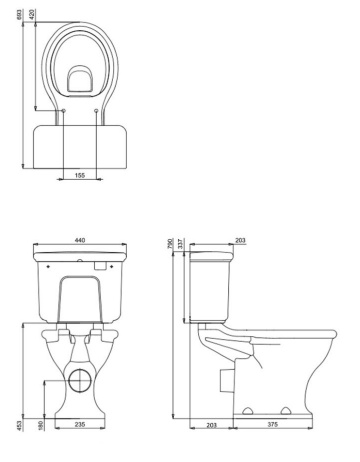 Унитаз-моноблок Burlington Guild с керамической ручкой слива, бачок 44см