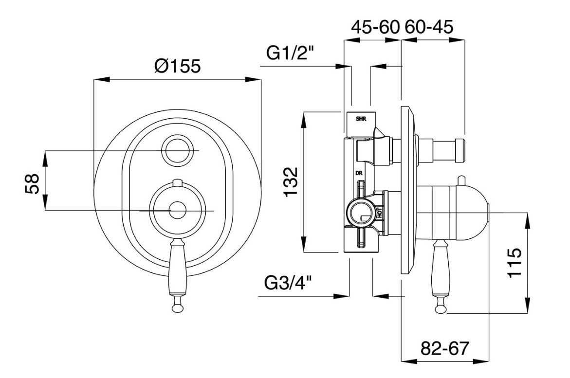 Смеситель встраиваемый термостатический Bugnatese Oxford 6378