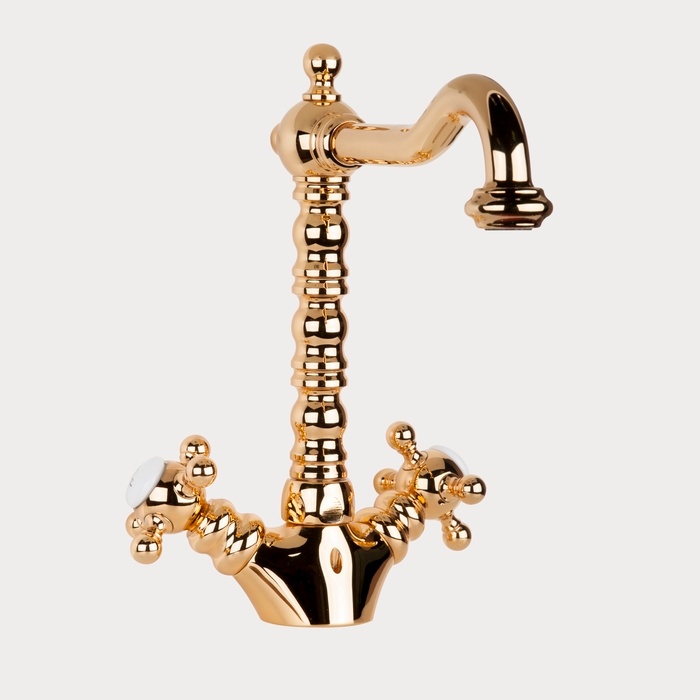 | 1230012D0oro | Gattoni Vivaldi Смеситель для раковины с высоким поворотным изливом 198мм, с донным клапаном, цвет золото 24кт | 448 € |