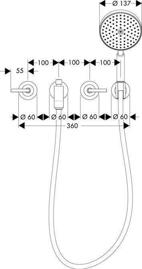 Axor Citterio Встраиваемый смеситель для ванны на 3 отв., с рычаговыми рукоятками, с ручным душем, (внешняя часть)