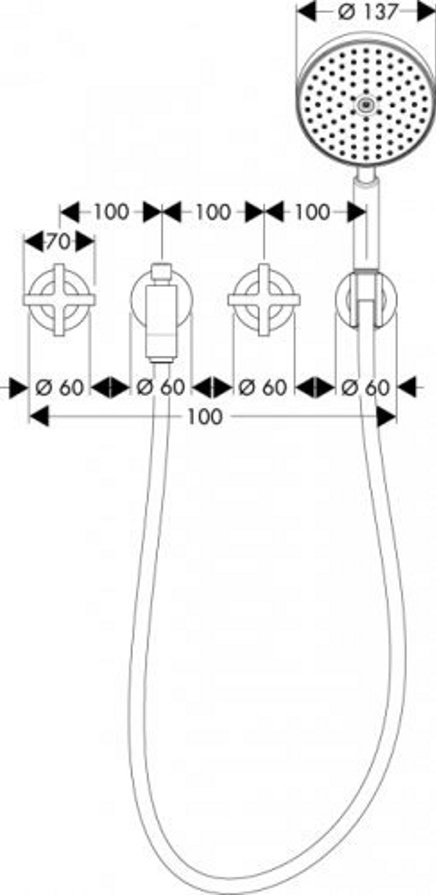 Axor Citterio Встраиваемый смеситель для ванны на 3 отв., с крестовыми рукоятками, с ручным душем, (внешняя часть)