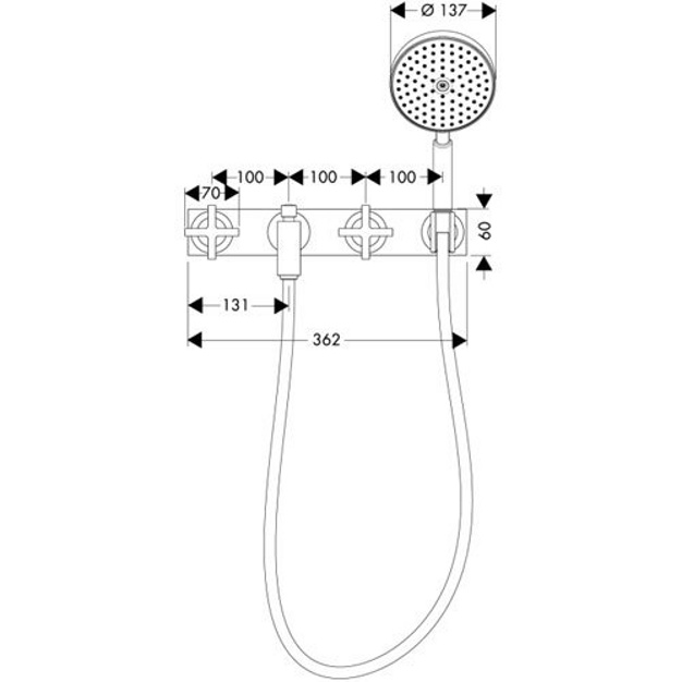 Axor Citterio Встраиваемый смеситель для ванны, на 3 отв., с рычаговыми рукоятками, панелью, ручным душем, (внешняя часть)