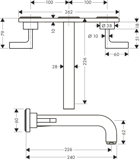 Axor Citterio Встраиваемый смеситель для раковины, на 3 отв, с панелью, излив 226мм, с незапираемым донным клапаном (внешняя часть)