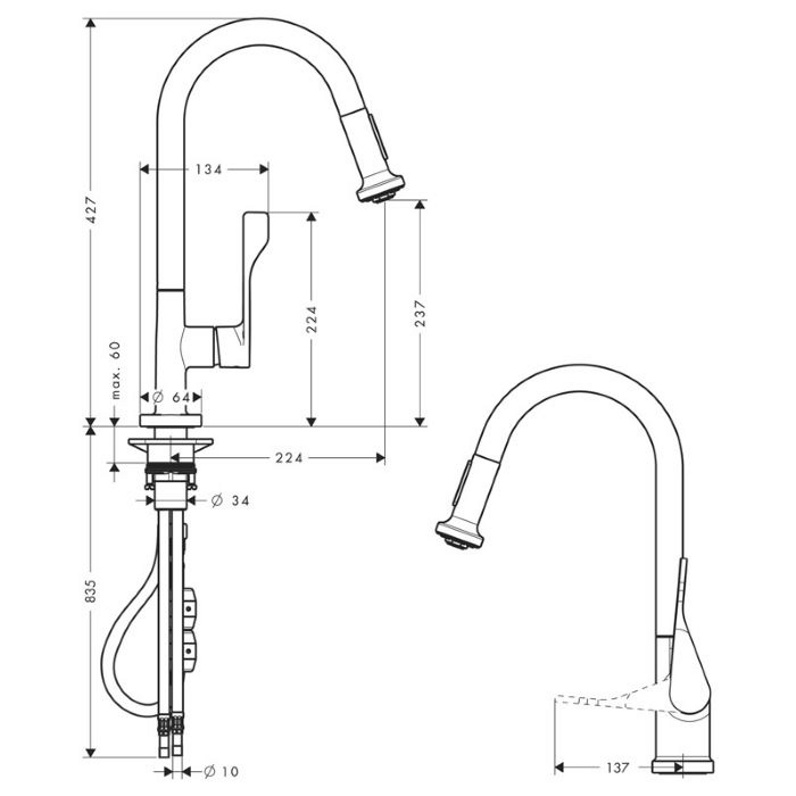 Axor Citterio Смеситель для кухни, однорычажный, на 1 отв, с выдвижным душем, излив 220мм