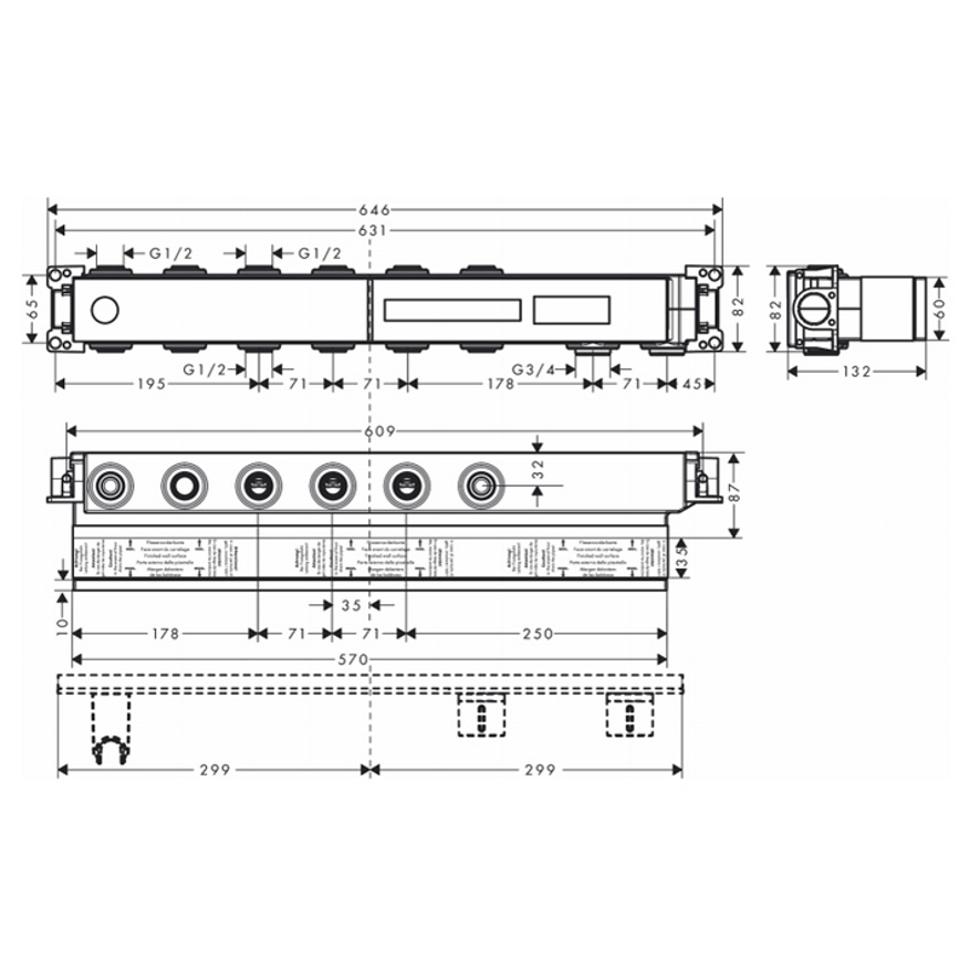 Скрытая часть термостата Axor Select на 4 источника