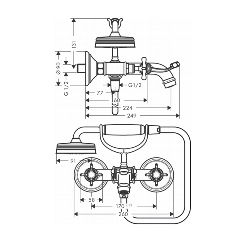 Материал- латунь Ручной душ с белой рукояткой (арт. 16320000) Металлический шланг 1,25м (арт. 28112000)