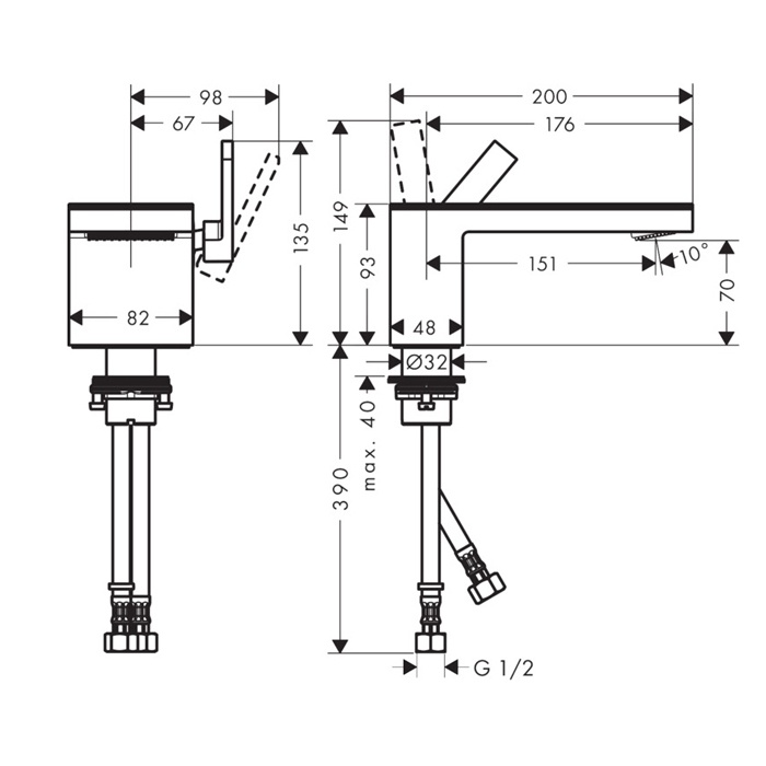 47012000- AX MyEdition Смеситель для раковины 70, на 1 отв., излив 200мм, со сливным гарнитуром (без панели), цвет: хром