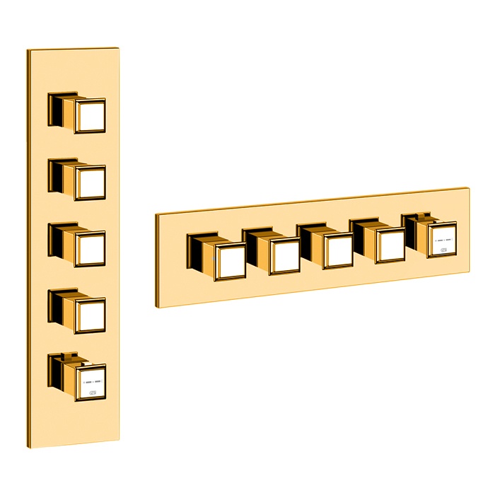46208#080 Gessi Eleganza Внешняя часть встраиваемого термостатического смесителя, подключение на 3/4”, с 4мя независимыми выходами, цвет: золото