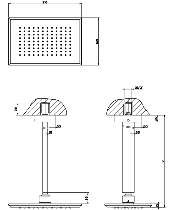 Gessi Eleganza Верхний душ потолочный, высота от 115 до 1865мм