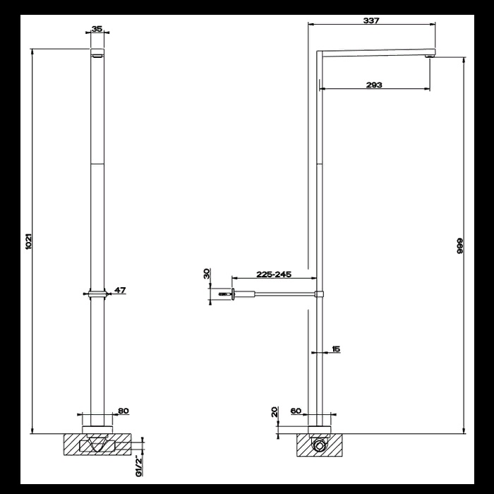 20396#031 Gessi Rettangolo Напольный излив для ванны h1021мм (внешняя часть), цвет: хром