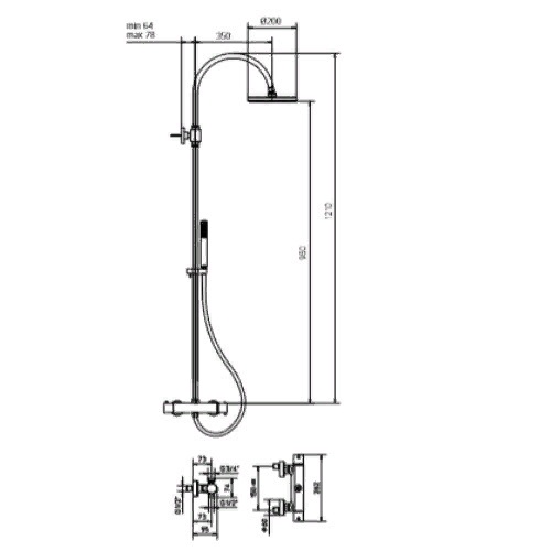 Размер душевой лейки: 200