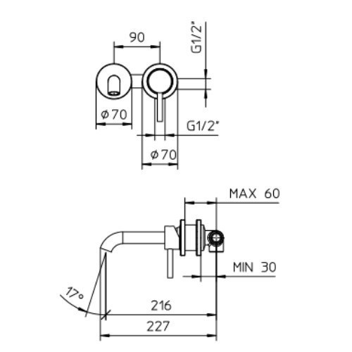 Palazzani Digit встроенный смеситель на раковину, излив 229 мм