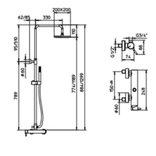 Размер душевой лейки: 200, 28x28x221