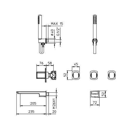 Palazzani Mis встроенный комплект для ванны с душевым гарнитуром, хром