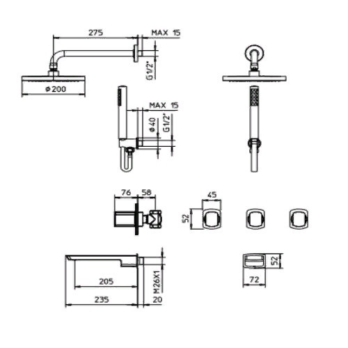 Palazzani Mis встроенный комплект для ванны с душевым гарнитуром хром