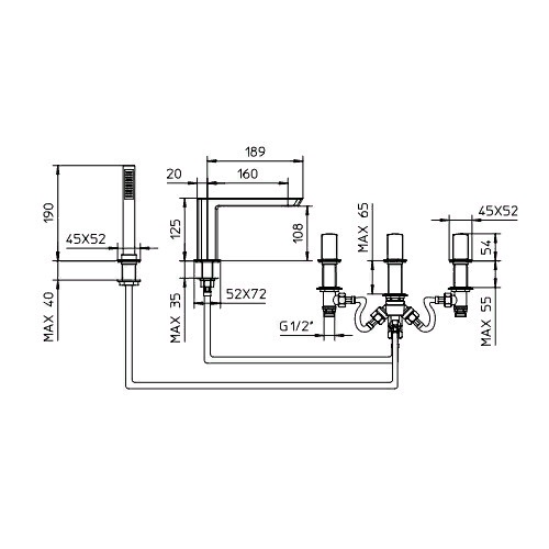 Palazzani Mis врезной смеситель для ванны с душевым гарнитуром хром