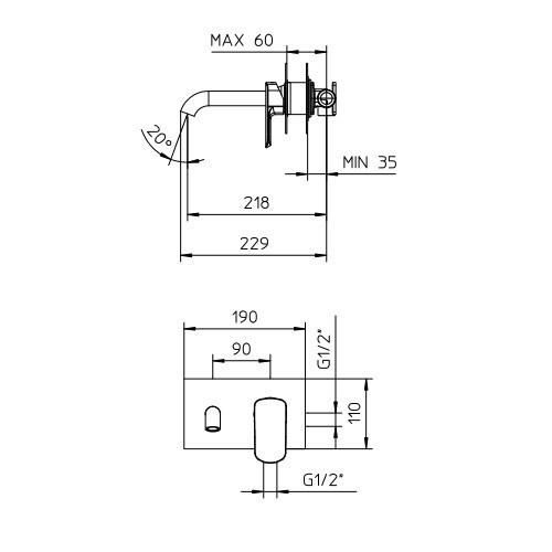 Встроенный смеситель настенного крепления.