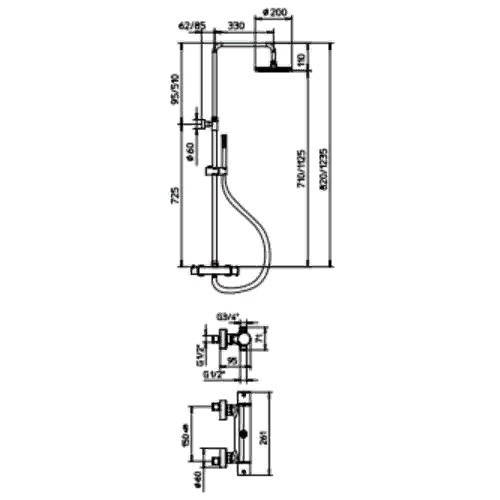 Palazzani Track душевая система с термостатическим смесителем и верхним душем