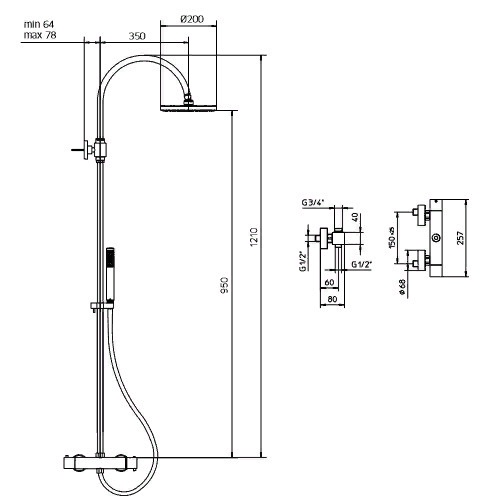 Palazzani Track+Edge душевая система с термостатическим смесителем и верхним душем