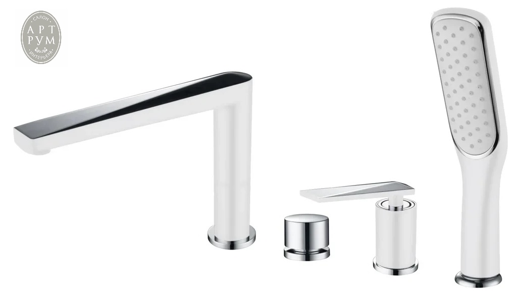 Смеситель на борт ванны Boheme VENTURO белый+хром