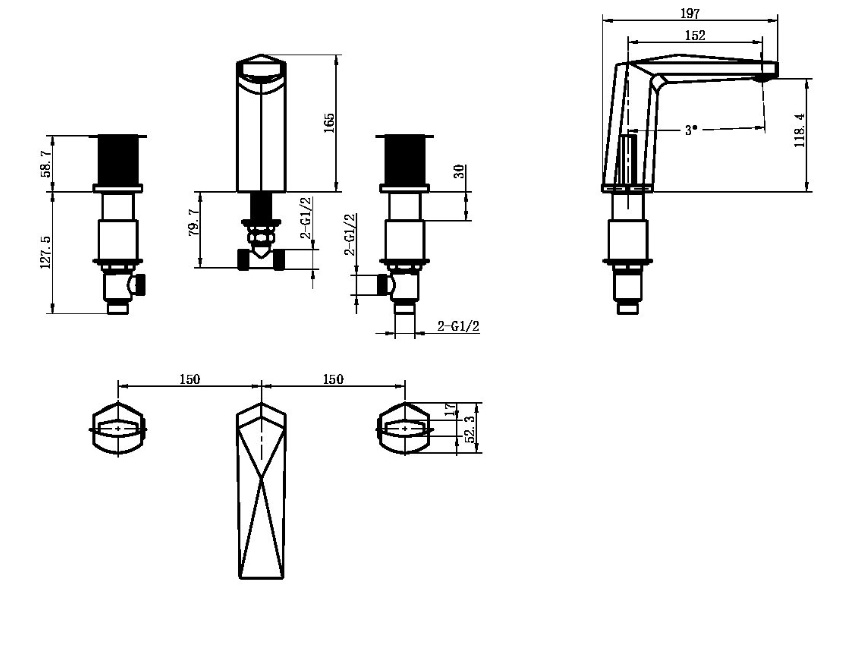 Тип-двухвентильный/на 3 отверстия на раковину