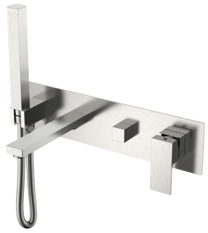 Смеситель для ванны встраиваемый с душ набором Boheme Qubic Brushed Nickel