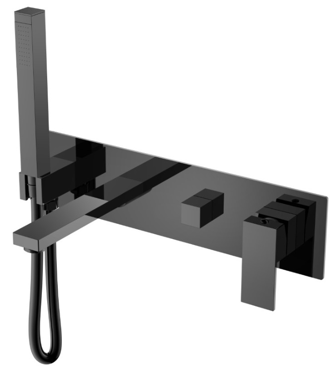 Смеситель для ванны встраиваемый с душ набором Boheme Qubic Shinny Gun Metall
