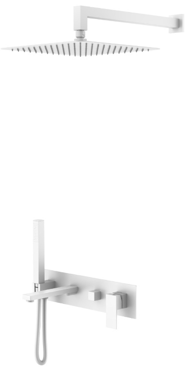 Смеситель встроенный + верхний+ ручной душ Boheme Qubic Matt White