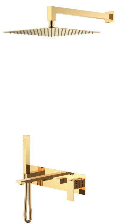 Смеситель встроенный + верхний+ ручной душ Boheme Qubic Shinny Gold